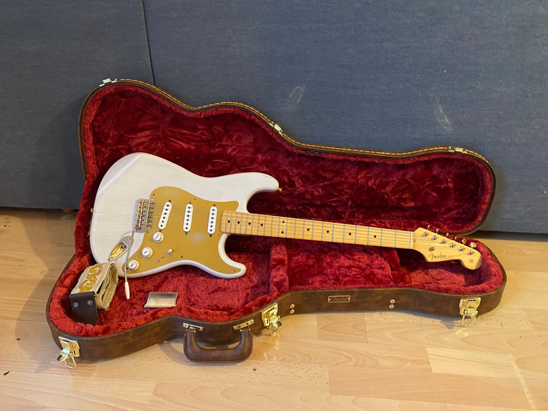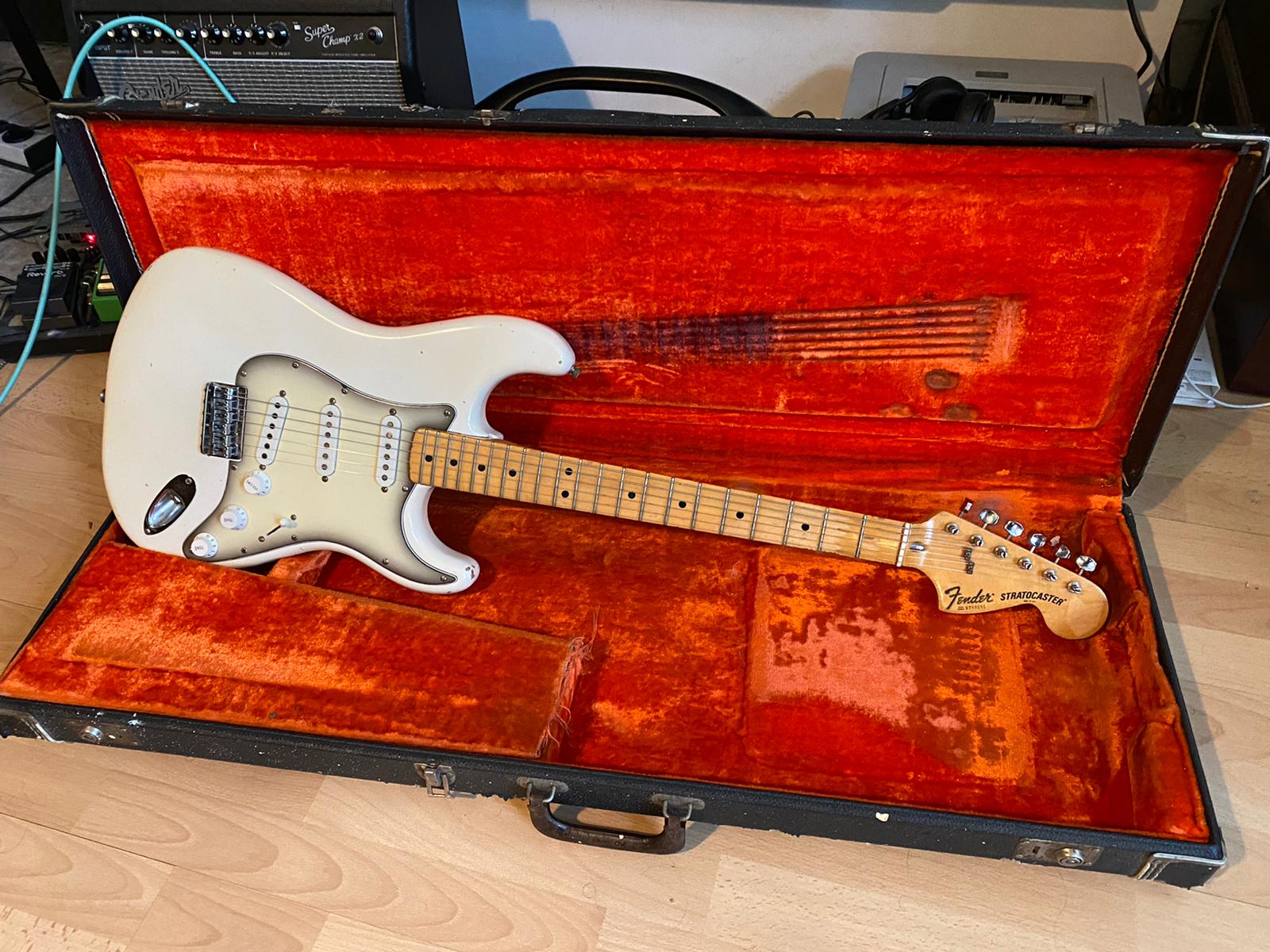 I love vintage guitars even though piano is my first instrument. And especially the Fender Stratocaster from between 1954 and 1979. My goal in life is to one day own a 1963 or older Stratocaster. I am selling part of my collection to reach that goal. Until then I will be looking in all the places for parts and guitars that tell a complete life story and after restoration will be played again by a true lover of these vintage guitars.